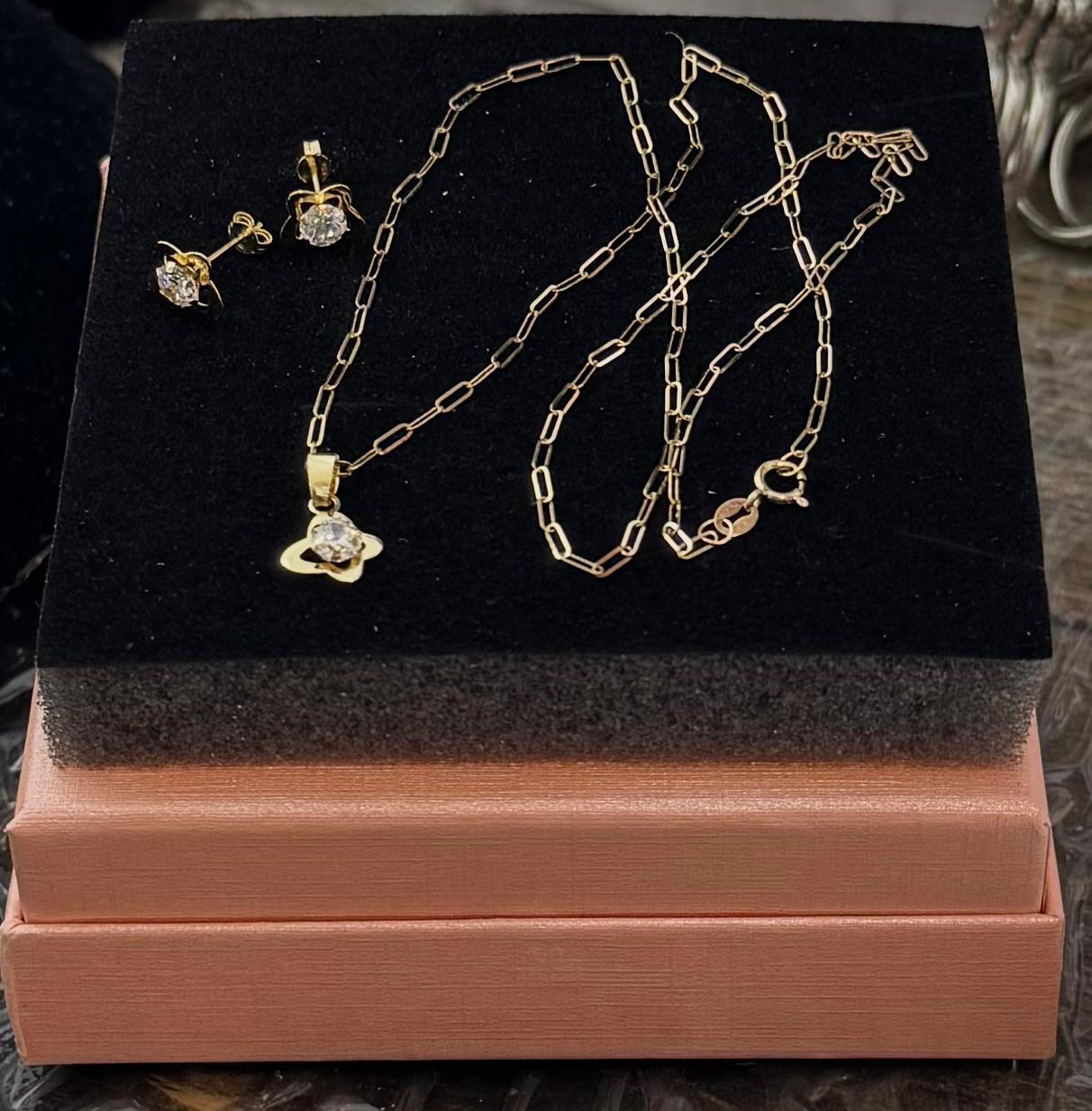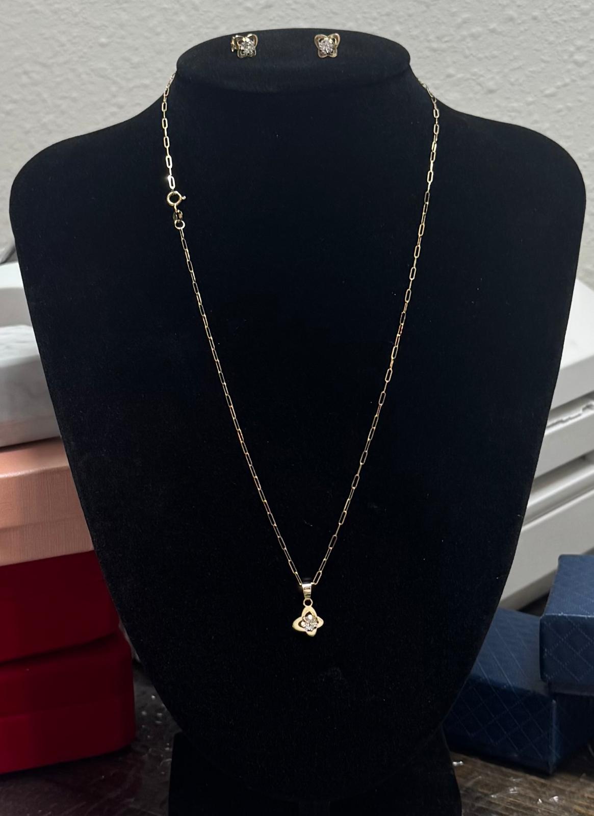 bella cadena de eslabones en oro 18k Italiano fabricada por nuestros artesanos tres en uno cadena sarcillo dije trebol y circon medida 18 pulgada