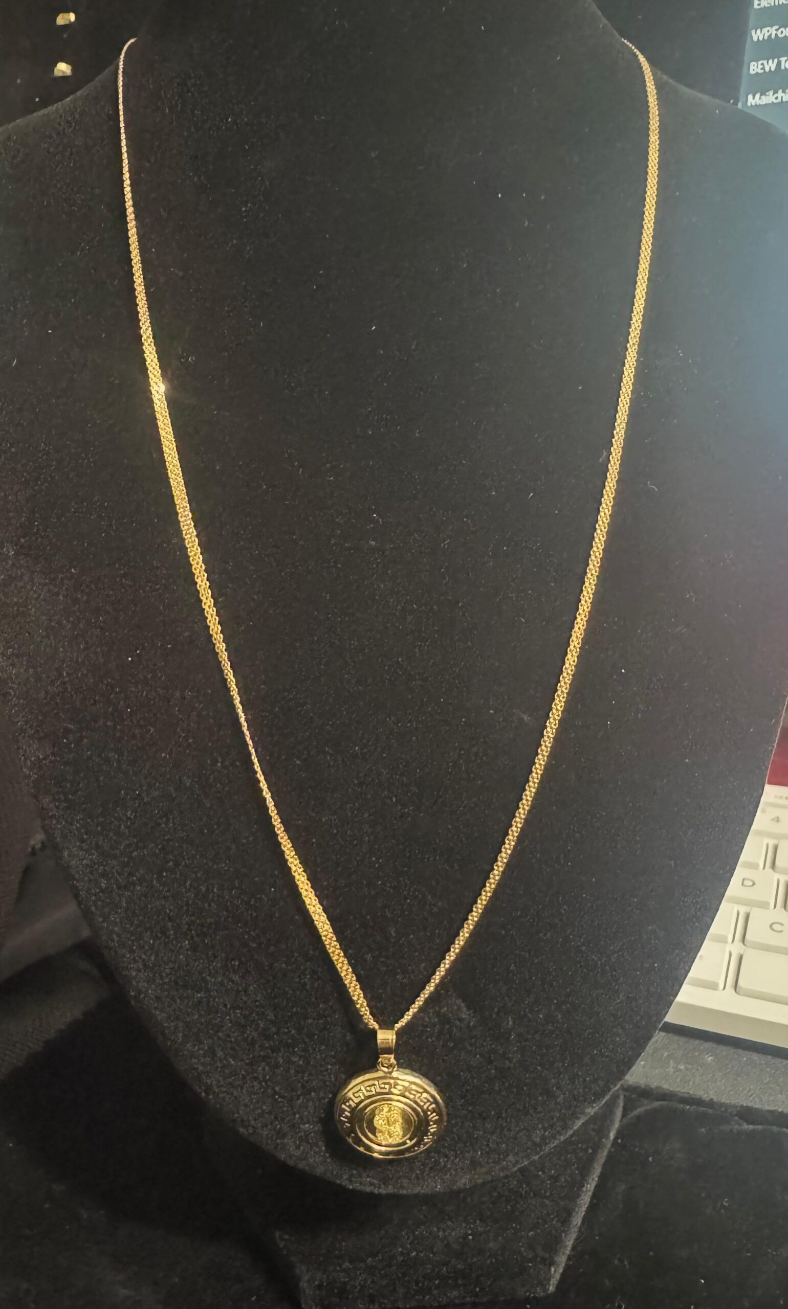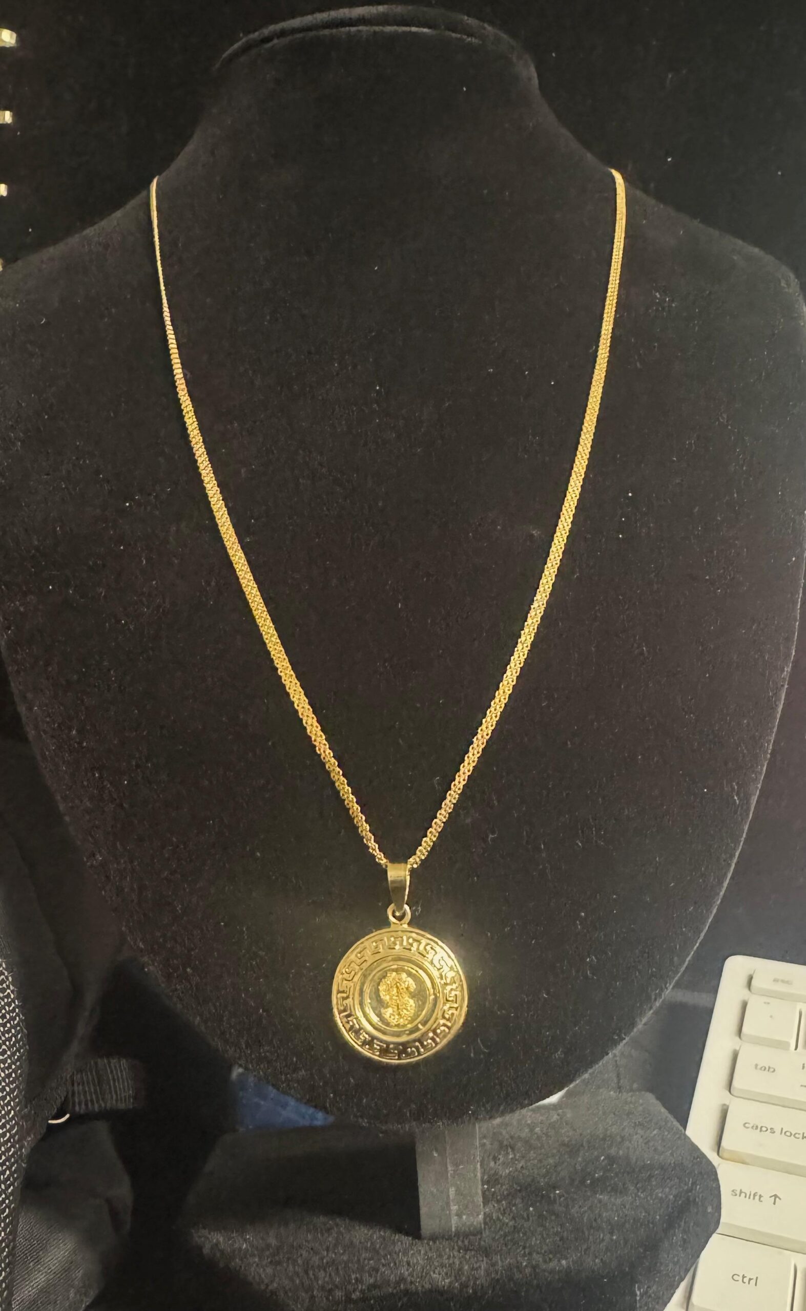 cadena tejido chino en oro 18k Italiano mas dije redondo de signo del dolar peso 4.01 gramo – largo 23 pulgadas -ancho 2 22